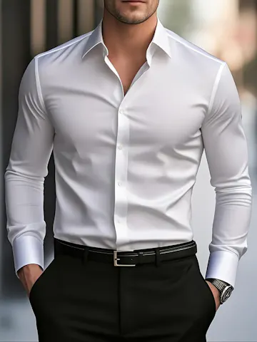 Slim-Fit Casual Shirt, Men's Slim-Fit Casual Shirt - Solid Color Long Sleeve Button-Up with Pointed Collar, Tailored for Spring/Fall, Versatile for Casual & Semi-Formal Occasions.